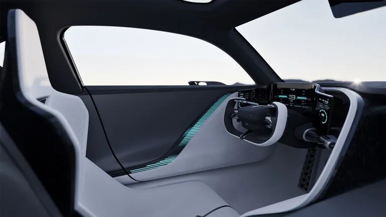 Interiér sa nesie v duchu filozofie „Discover Immersion“, teda maximálneho sústredenia na vodiča. Ovládacie prvky sú sústredené okolo sedadla, kabína je minimalistická a orientovaná na intuitívne používanie. Najvýraznejším prvkom je netradičný volant v štýle yoke, ktorý má umožniť ovládanie bez potreby prechytávania rúk a s ovládačmi dostupnými len podľa hmatu.