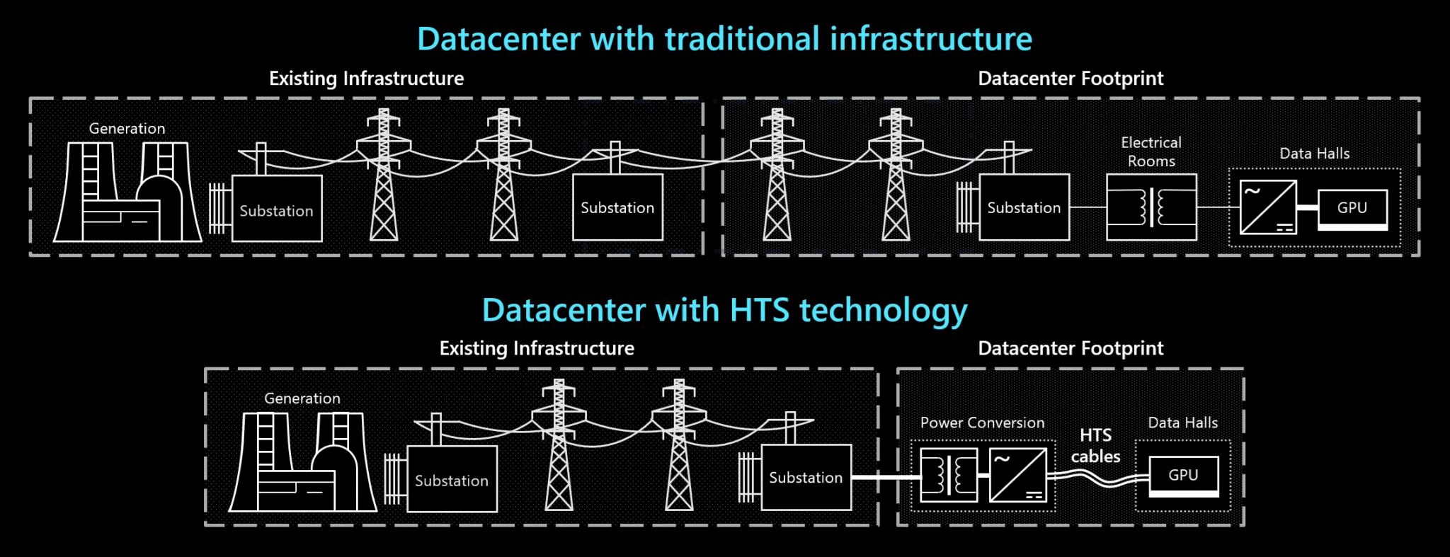 Supravodivé káble by boli kompaktnejšie a efektívnejšie než tradičné medené či hliníkové vedenia. Kým klasické nadzemné vedenia vyžadujú približne 70 metrov priestoru kvôli elektromagnetickým poliam a bezpečnostným odstupom, HTS káble by podľa Microsoftu stačili uložiť do približne dvojmetrového výkopu. To by výrazne znížilo nároky na infraštruktúru aj priestor v okolí rozvodní.