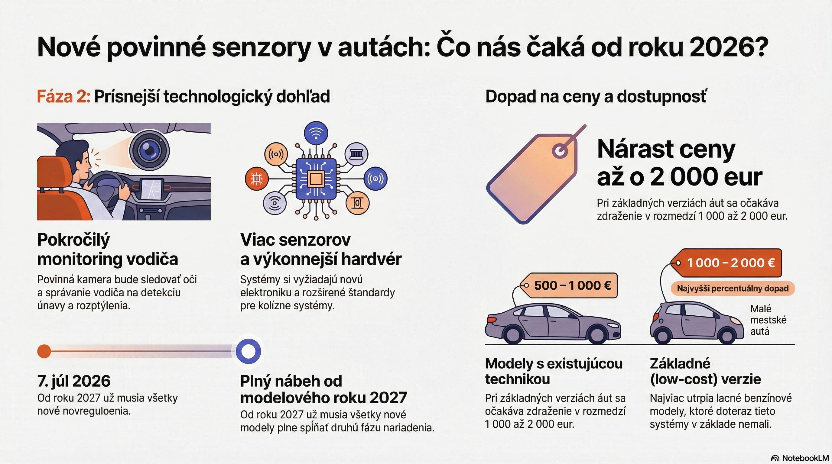 Európska únia od 7. júla 2026 sprísňuje bezpečnostné pravidlá pre nové autá. Ide o druhú fázu nariadenia General Safety Regulation (GSR2), ktoré už v roku 2024 prinieslo povinné automatické brzdenie, udržiavanie v pruhu či detekciu únavy vodiča.