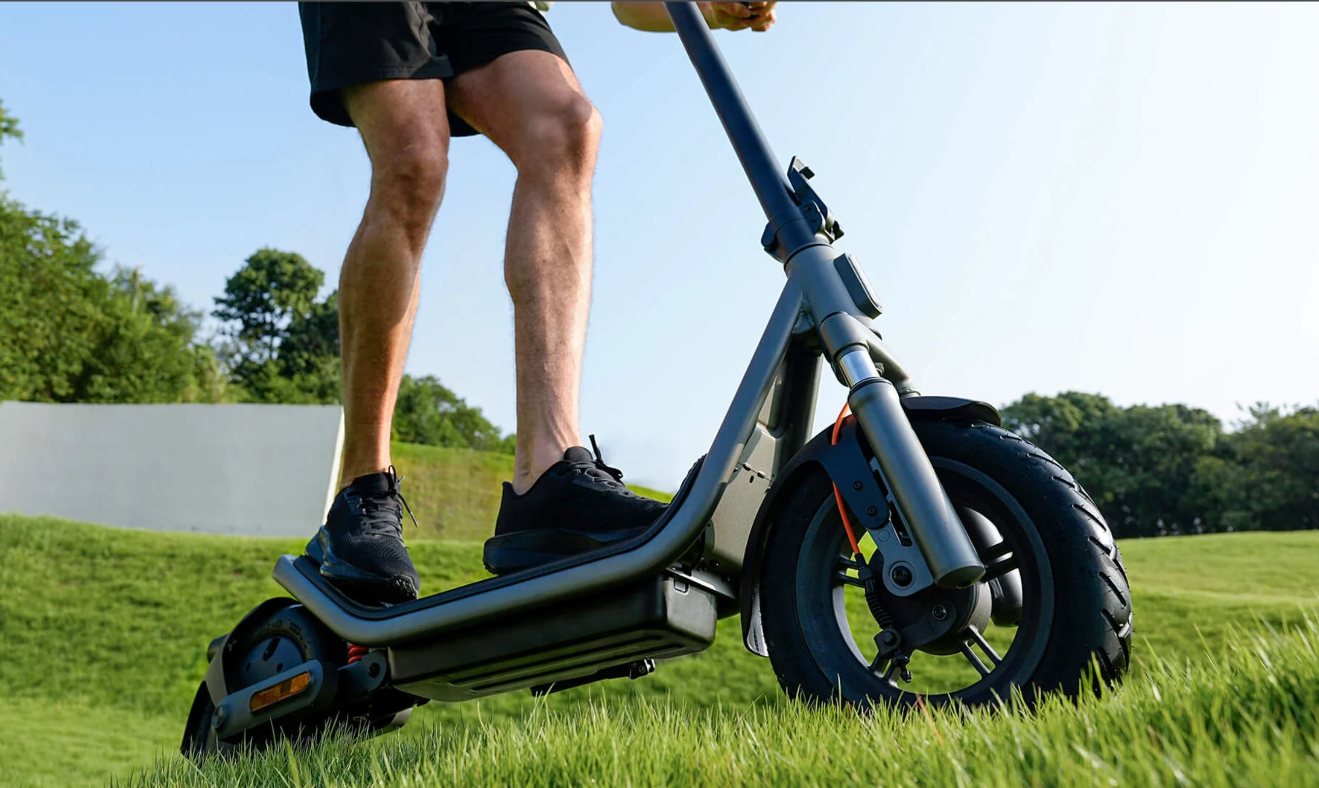 Dôraz sa kladie aj na komfort a stabilitu. Kolobežka je vybavená 12-palcovými all-terrain pneumatikami so šírkou 3 palce a nízkym valivým odporom, ktoré lepšie zvládajú výmole, dlažbu či hrubší asfalt. Predné aj zadné odpruženie využíva kyvné ramená s vysokopevnostnými elastomérmi, ktoré tlmia nárazy a zlepšujú kontrolu nad jazdou. Nechýbajú predné a zadné kotúčové brzdy s podporou E-ABS, systém trakčnej kontroly TCS a zvýšená svetlá výška pre lepšiu priechodnosť terénom. Konštrukcia je z vysokopevnostnej ocele a unesie až 140 kg. Odolnosť voči vode dosahuje stupeň IPX6.