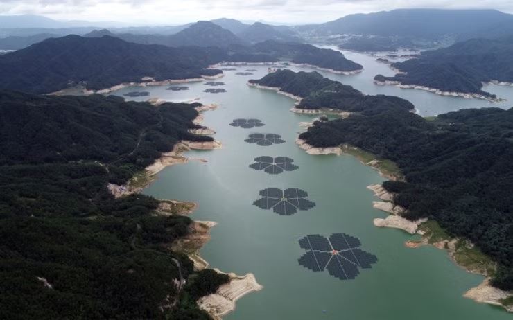 These giant flower shapes floating on Hapcheon Dam in South Korea are actually a massive floating solar power plant.