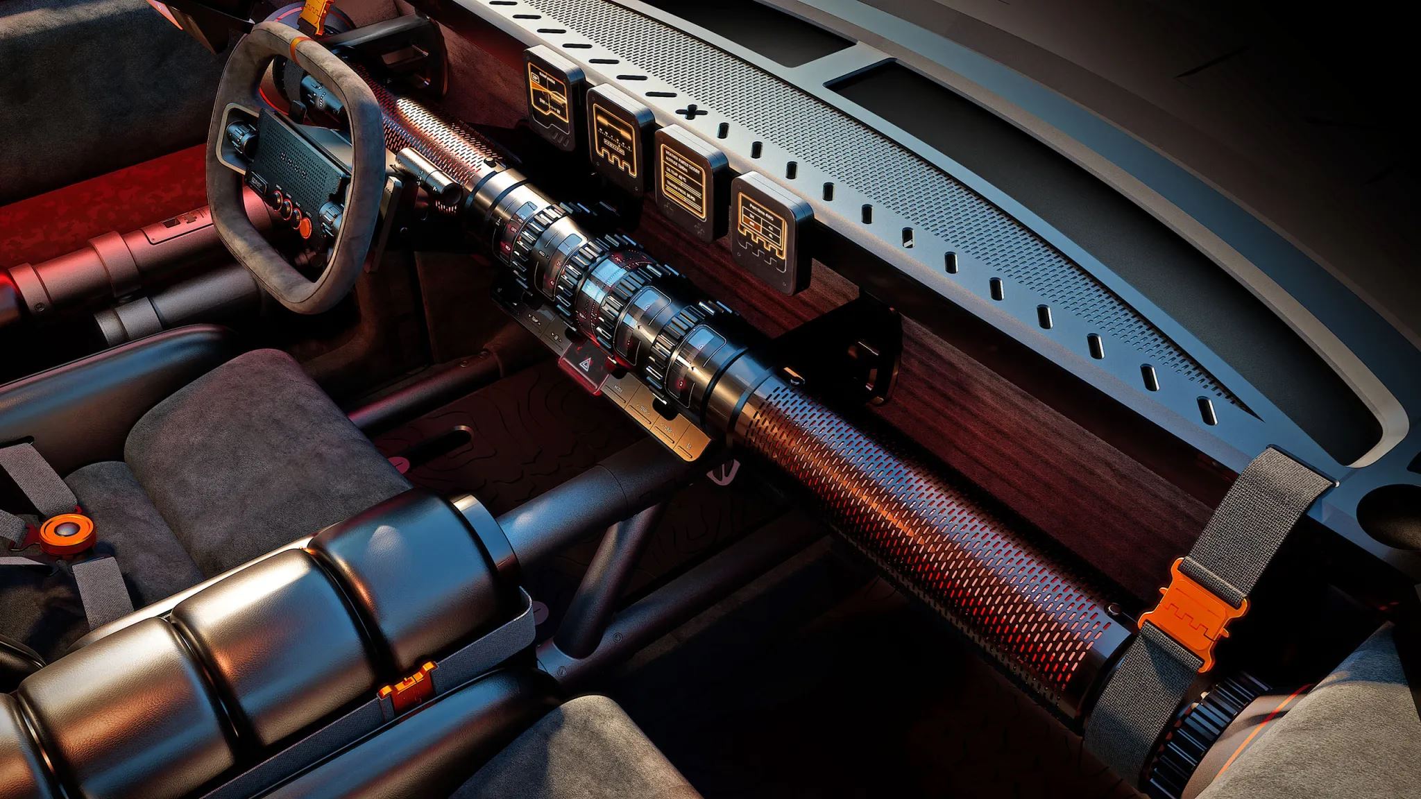 Práve tu sa objavuje aj ten kyberpunkový dojem. Namiesto jednej dominantnej megadisplejovej plochy využíva Boulder viac menších obrazoviek a modulárne pôsobiace rozloženie palubnej dosky. Podľa The Drive to naznačuje, že automobilky sa môžu začať posúvať od frustrujúcich veľkých dotykových obrazoviek späť ku kombinácii technológií a fyzického ovládania. The Drive zároveň upozorňuje na podobnosť s minuloročným konceptom Crater, ktorý už tento smer naznačoval.