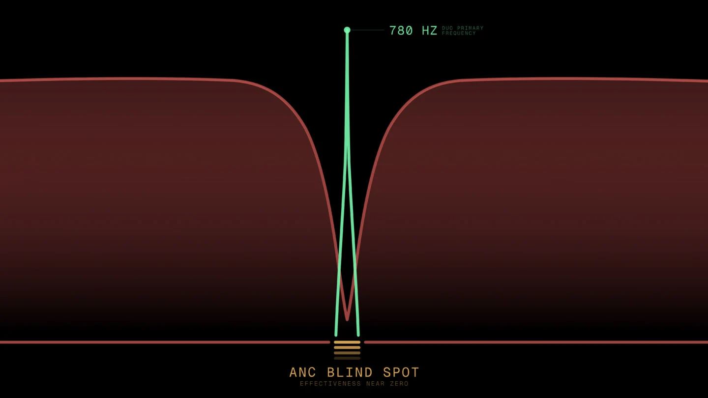 Keďže takto ladený tón je na bicyklový zvonček pomerne nízky a bez slúchadiel by nemusel byť taký výrazný ako pri bežných modeloch, DuoBell pridáva aj druhý, vyššie posadený zvuk. Práve kombinácia dvoch tónov je dôvodom názvu DuoBell. Celé riešenie je pritom plne mechanické, teda ide o analógovú odpoveď na digitálny problém.