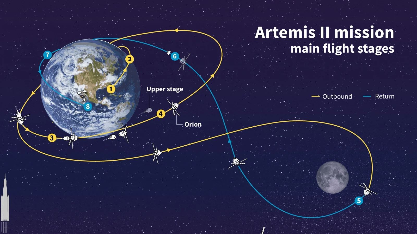 Samotný záver misie bude prebiehať v presne načasovanej sekvencii. Najskôr sa oddelí návratový modul od servisného modulu, následne Orion upraví vstupný uhol a krátko nato narazí do vrchných vrstiev atmosféry vo výške približne 400-tisíc stôp. NASA počíta s tým, že posádka počas zostupu zažije preťaženie do 3,9 G a zároveň asi šesťminútové výpadky komunikácie, ktoré spôsobí plazma vytvorená okolo kapsuly.